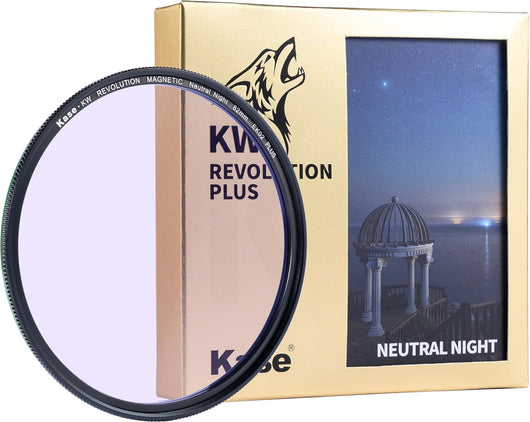 Kase's ultra-light, extremely thin Revolution magnetic filters feature the same shockproof, tempered, durable and easy to clean optical glass as the renowned Wolverine series with the addition of color coding on the outer rings for easy identification, stronger magnetism and a single filter thread to catch a traditional lens cap. This is an extremely durable, tempered optical glass Neutral Night light pollution filter. Revolution filters have no color cast and the magnetic system allows photographers to quickly swap and stack up to 4 Revolution filters with ease. Each filter is extremely thin and light.