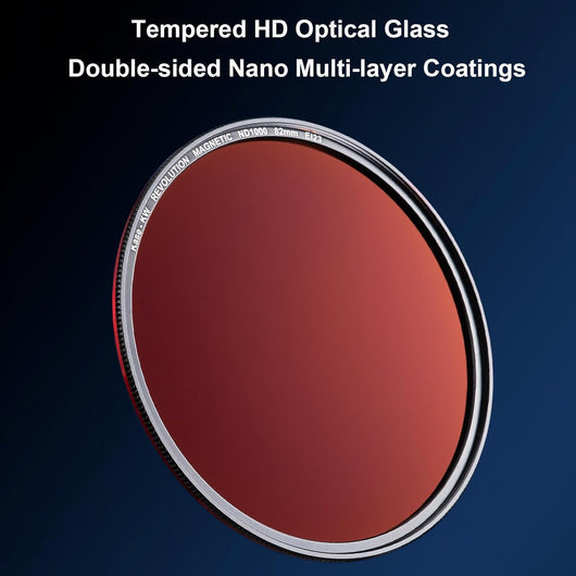 Kase's ultra-light, extremely thin Revolution magnetic filters feature the same shockproof, tempered, durable and easy to clean optical glass as the renowned Wolverine series with the addition of color coding on the outer rings for easy identification, stronger magnetism and a single filter thread to catch a traditional lens cap. This is an extremely durable, tempered optical glass 10-stop ND1000 neutral density filter. Revolution filters have no color cast and the magnetic system allows photographers to quickly swap and stack up to 4 Revolution filters with ease. Each filter is extremely thin and light.